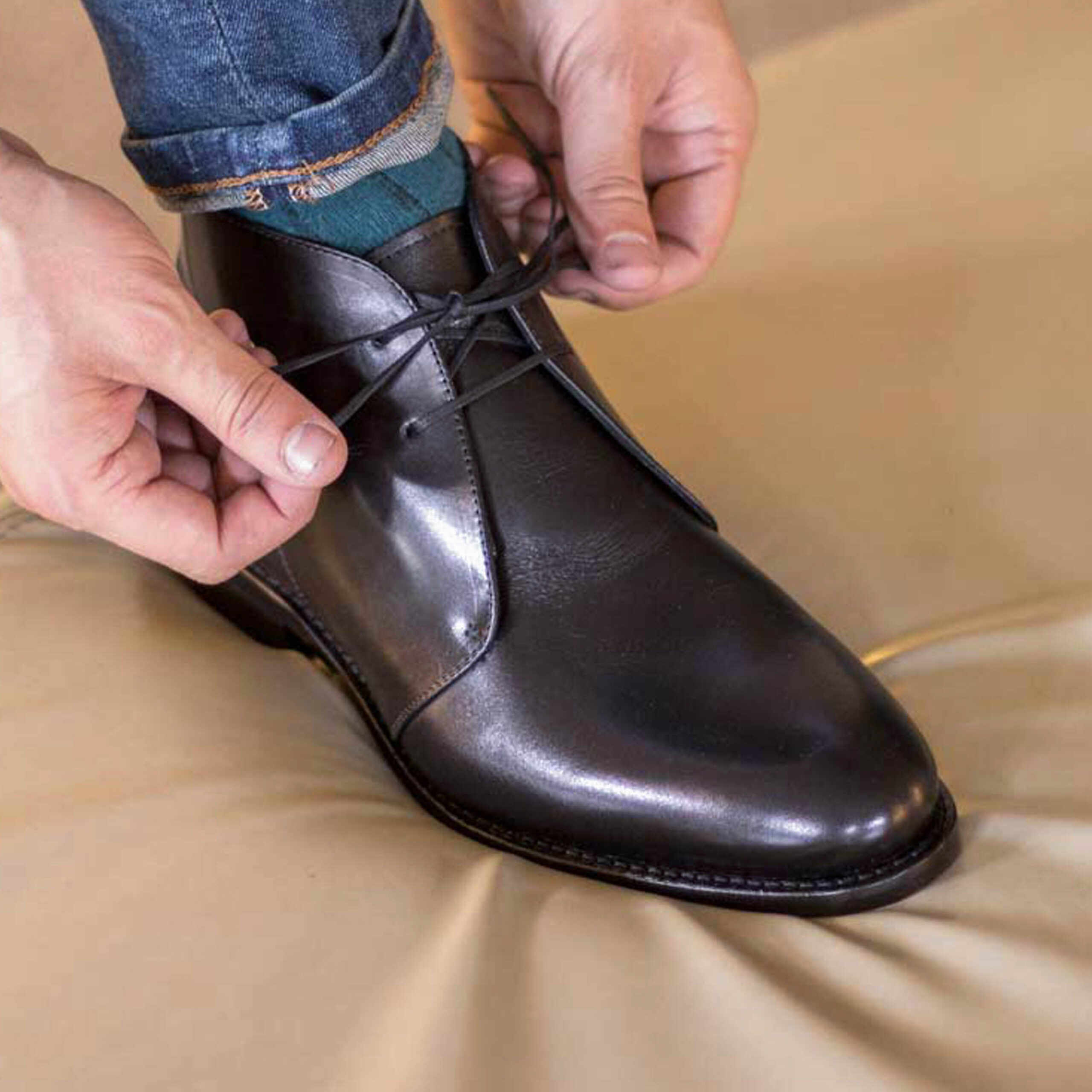 Goodyear Welted shoes & sneakers are made & fit quite differently. Sneaker fit is quite forgiving, whereas in a Goodyear Welted pair of shoes you’d like to have a close and adjusted feel in order to have the best and most comfortable fit.