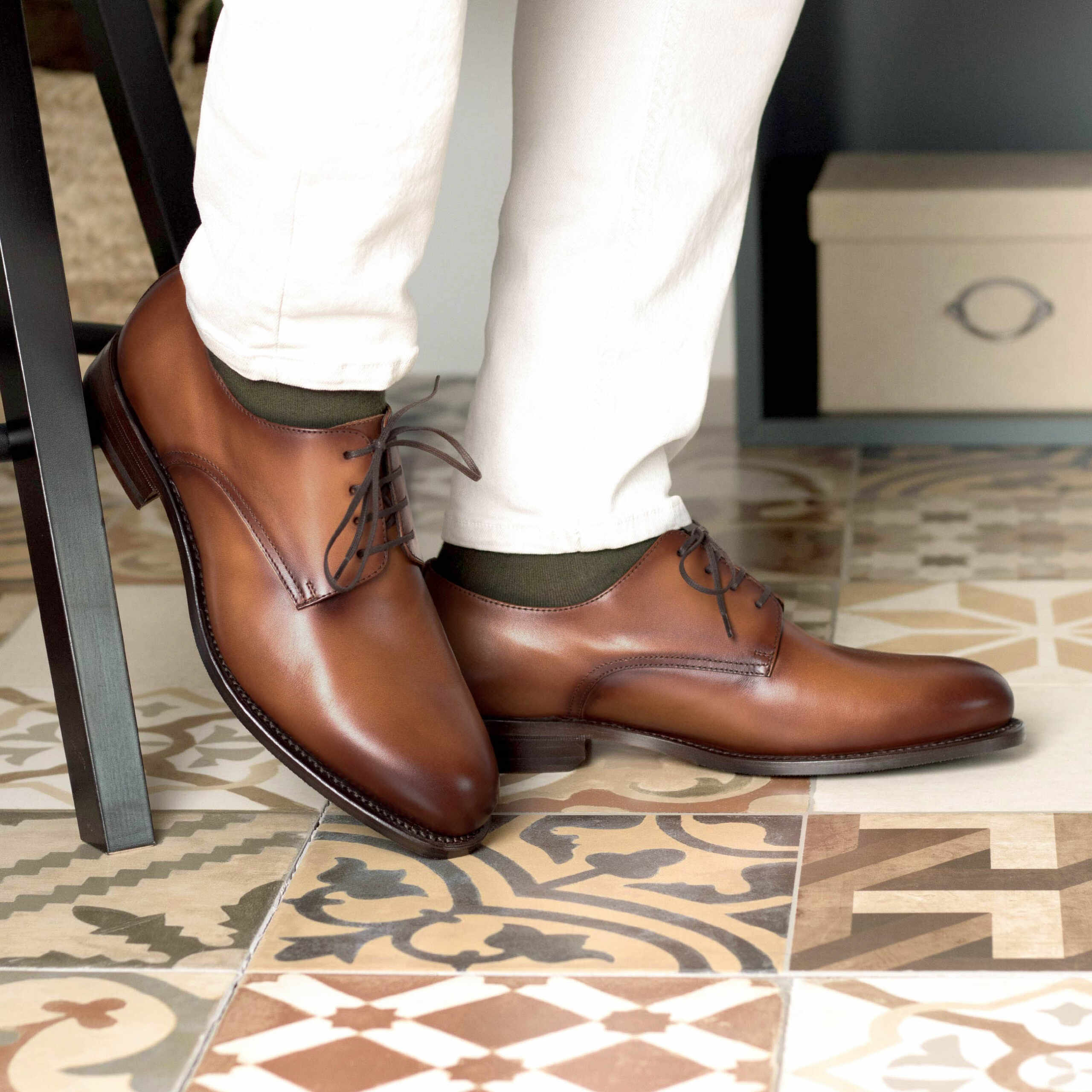 Goodyear Welted shoes & sneakers are made & fit quite differently. Sneaker fit is quite forgiving, whereas in a Goodyear Welted pair of shoes you’d like to have a close and adjusted feel in order to have the best and most comfortable fit.